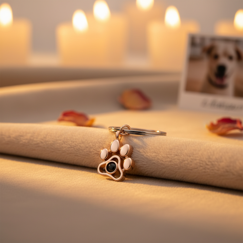 Naše klíčenka s fotošperkem ve tvaru psí tlapičky je víc než jen doplněk – je to osobní památeční šperk, který vám umožní mít svého milovaného mazlíčka stále při sobě.