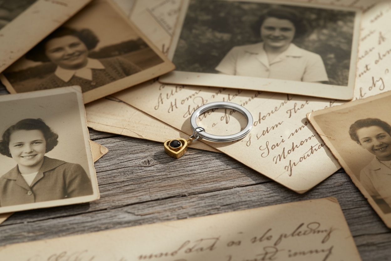Elegantní klíčenka s fotošperkem ve tvaru srdce je dokonalým způsobem, jak mít své nejdražší vzpomínky vždy na dosah. Tento jedinečný šperk vám umožní nosit fotografii milované osoby, domácího mazlíčka nebo jakoukoliv vzpomínku, která vám přináší radost a sílu.